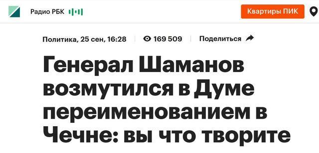 据悉,在俄罗斯国家杜马会议期间,俄军退役上将、执政党统一俄罗斯党议员沙马诺夫对车臣议会提出的一项城市更名法案表达了不满。